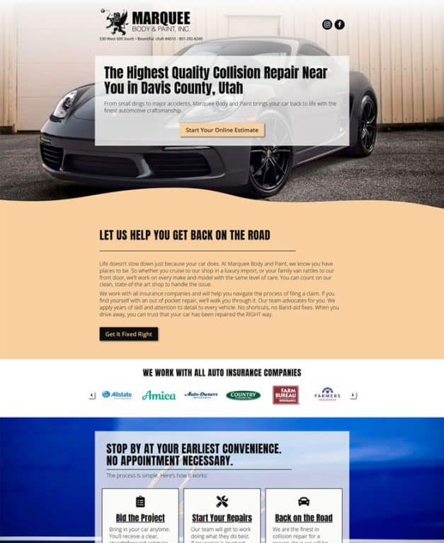 Marquee Body and Paint Case Study Polishing Up Their Website Sharpening What Works Marquee Body…